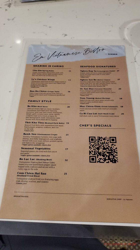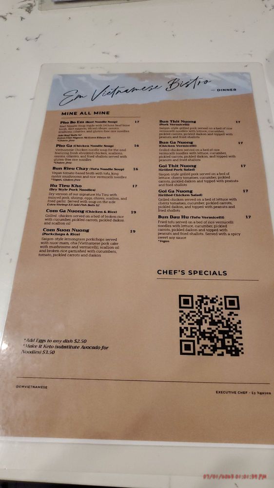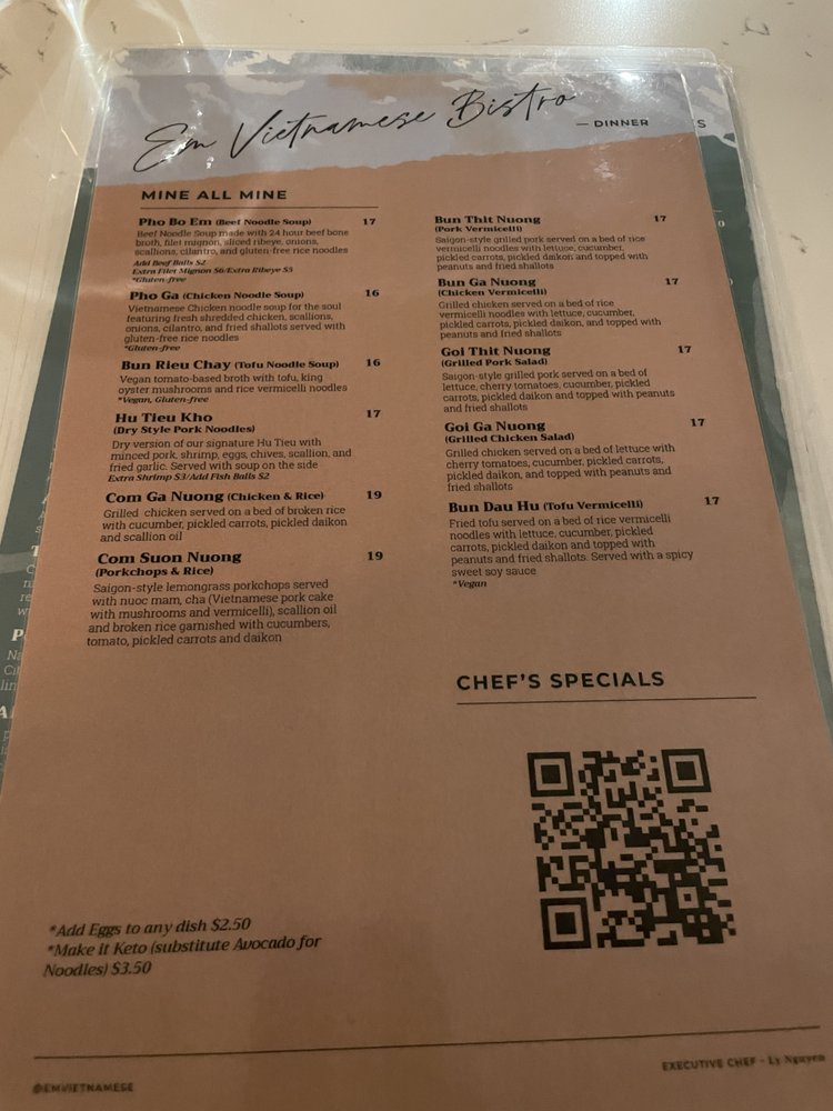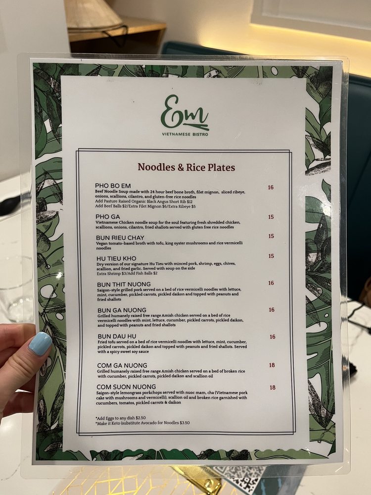 "Em Vietnamese Bistro" located in Brooklyn offers a diverse menu with a focus on authentic Vietnamese seafood dishes. Customers rave about the flavorful pho and Bun Thit Nuong, highlighting the well-cooked noodles and delicious pork. The restaurant provides a casual, trendy atmosphere with friendly service, although some reviews mention occasional lapses in attentiveness. Diners appreciate the generous portions and traditional toppings like jalapenos and bean sprouts. The family-style braised pork and beef pho are highly recommended for sharing, showcasing the restaurant's top-tier service and modern ambience. While prices may be slightly higher, the tasty dishes and welcoming atmosphere make "Em Vietnamese Bistro" a go-to spot for Vietnamese cuisine in the Dumbo area.